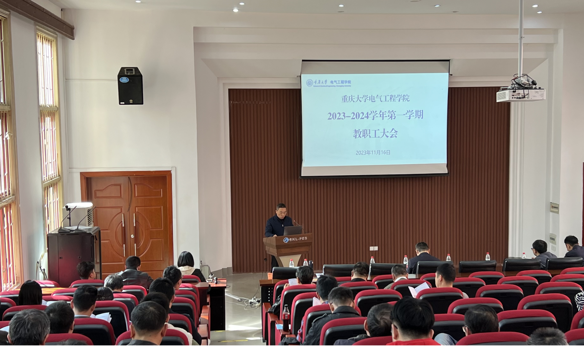 2023年11月16日下午,磁力猫 在六教6117报告厅召开2023-2024学年第一学期第二次全体教职工大会。会议主要通报了学院党委巡视整改工作、实验室安全工作、基金申报组织工作、职称评聘政策和师德师风建设情况。学院党委书记胡建林,院长谢开贵,党委副书记王晓静、吴嘉,副院长杜雄,输变电装备技术全国重点实验室副主任李辉,国家野外科学观测研究站专职副站长张志劲出席会议。大会由王晓静副书记主持。胡建林从巡视整改...