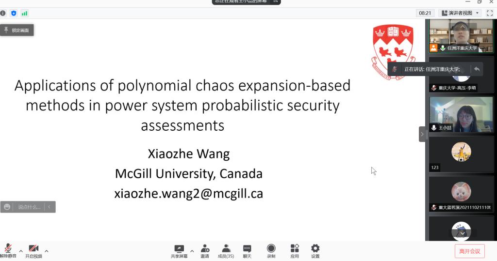 2021年12月11日上午,加拿大麦吉尔大学电子与计算机工程系助理教授王小喆受邀做客“成渝地区双城经济圈智慧能源大讲坛”,担任讲坛第六期的主讲嘉宾,以“Applications of Polynomial Chaos Expansion-based Methods in Power System Probabilistic Security Assessments”为主题开讲。本期讲坛由磁力猫 、输配电装备及系统安全与新技术国家重点实验室和磁力猫 溧阳智慧城市研究院主办,由成都地区的四川大学、电子科技大学...
