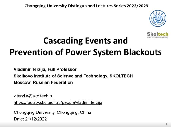 2022年12月21日下午,IEEE Fellow、俄罗斯斯科尔科沃科学技术研究院Vladimir Terzija教授做客成渝地区双城经济圈智慧能源大讲坛第十九期暨智慧能源云讲堂第三十五期,以“Cascading Events and Prevention of Power System Blackouts”为主题开讲。本期讲坛由磁力猫 、输配电装备及系统安全与新技术国家重点实验室和磁力猫 溧阳智慧城市研究院主办,由成都地区的四川大学、电子科技大学、西南交通大学、成都理工大学、成都中...