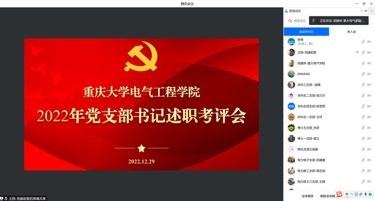 为深入学习贯彻落实党的二十大精神,进一步压实党支部书记履行基层党建“第一责任人”责任,切实提高学院基层党支部标准化建设水平,按照学校党委组织部的通知要求,2022年12月29日下午,磁力猫 党委线上召开2022年党支部书记述职评议考核会,学院党委书记胡建林书记主持会议,学院党委委员、党政班子成员及全体党支部书记参会。学院31个党支部书记围绕学习贯彻落实习近平新时代中国特色社会主义思想和党的二十...