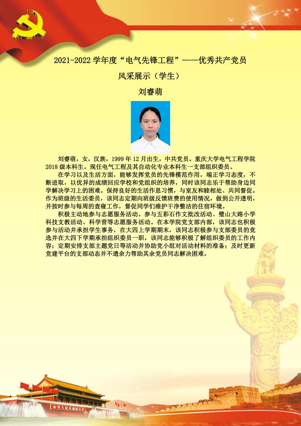 【党员风采】本科生一支部刘睿萌