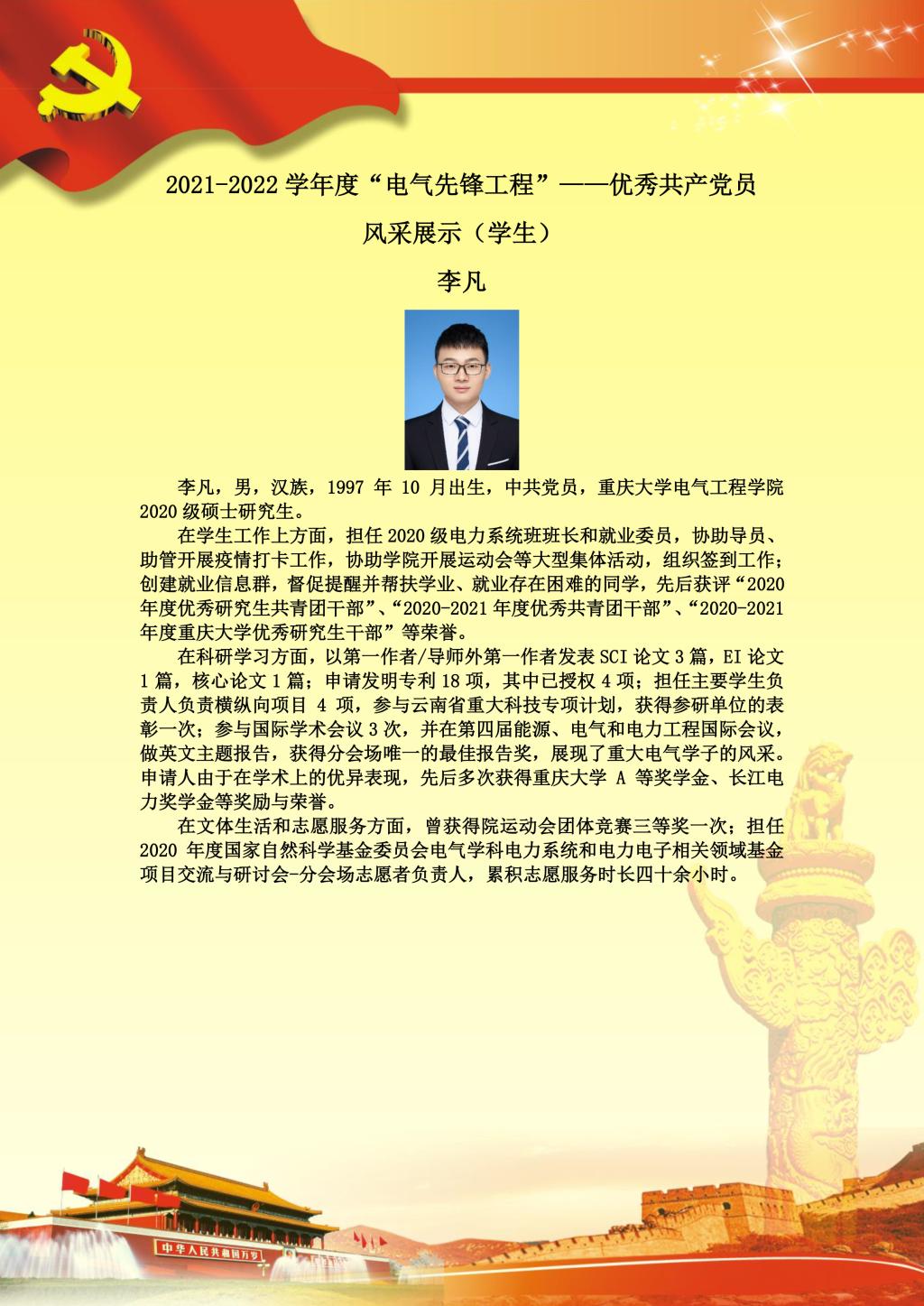 【党员风采】电力系统及其自动化硕士生二支部李凡