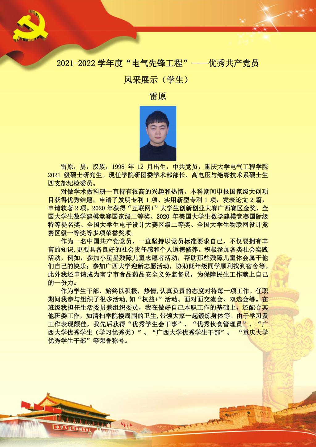 【党员风采】高电压与绝缘技术系硕士生四支部雷原