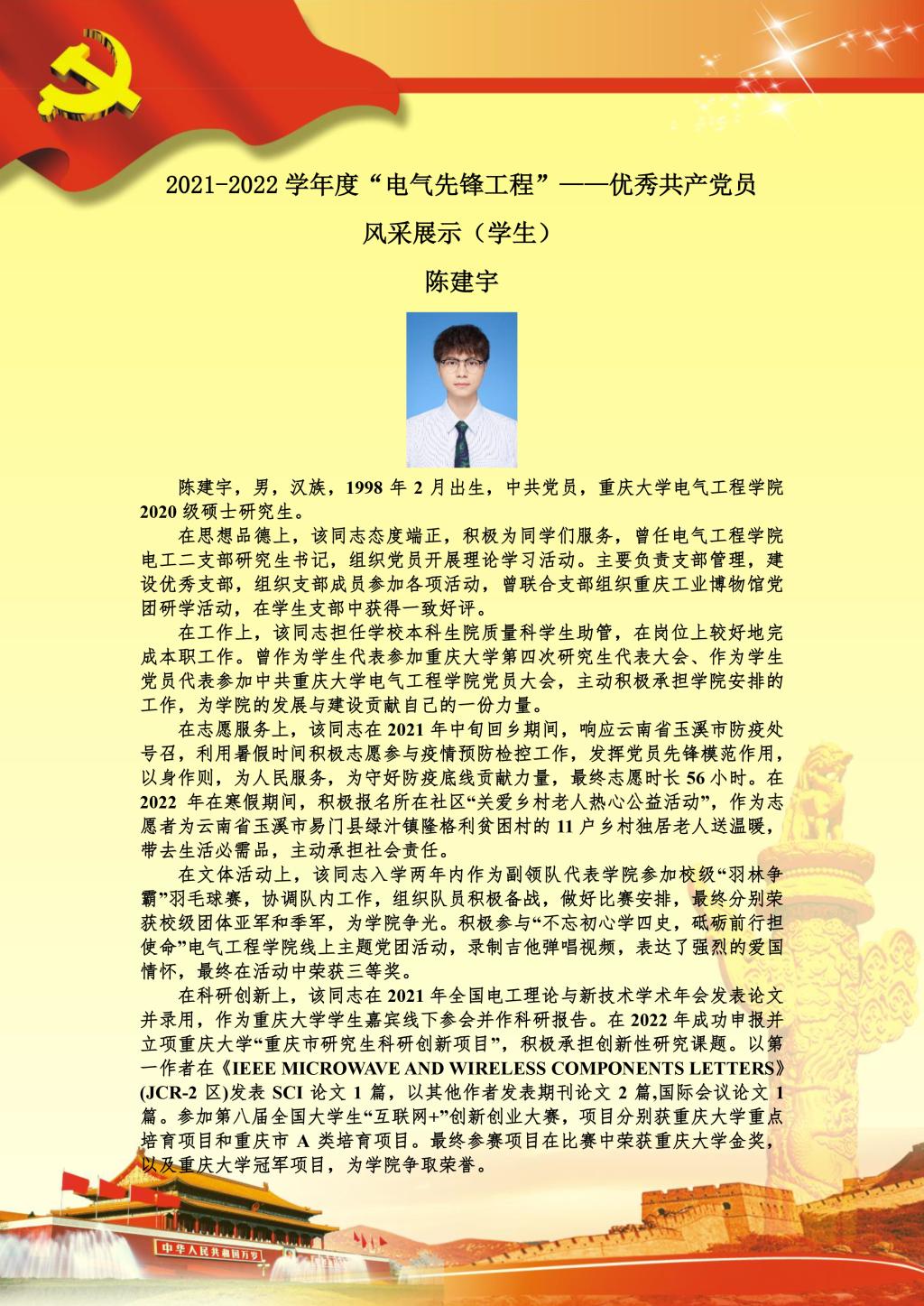 【党员风采】电工理论与新技术系硕士生二支部陈建宇