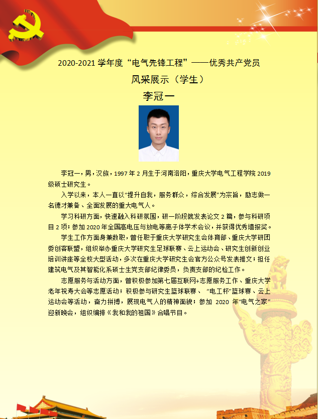 【党员风采】建筑电气与智能化系硕士生支部李冠一