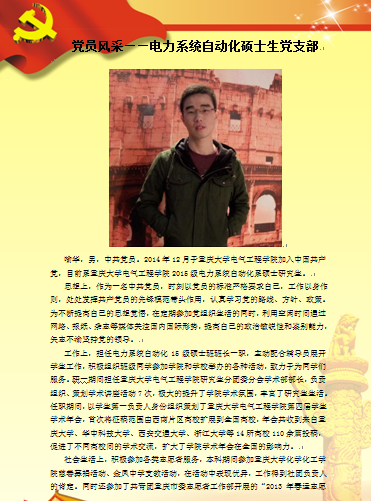 【党员风采】电力系统及自动化硕士生第二党支部-喻华