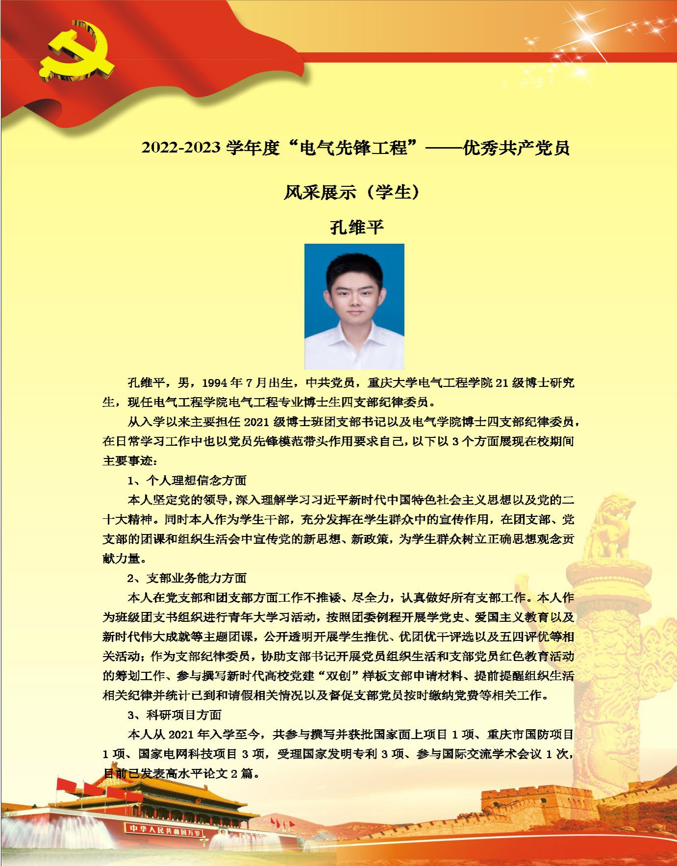 【党员风采】博士生四支部孔维平