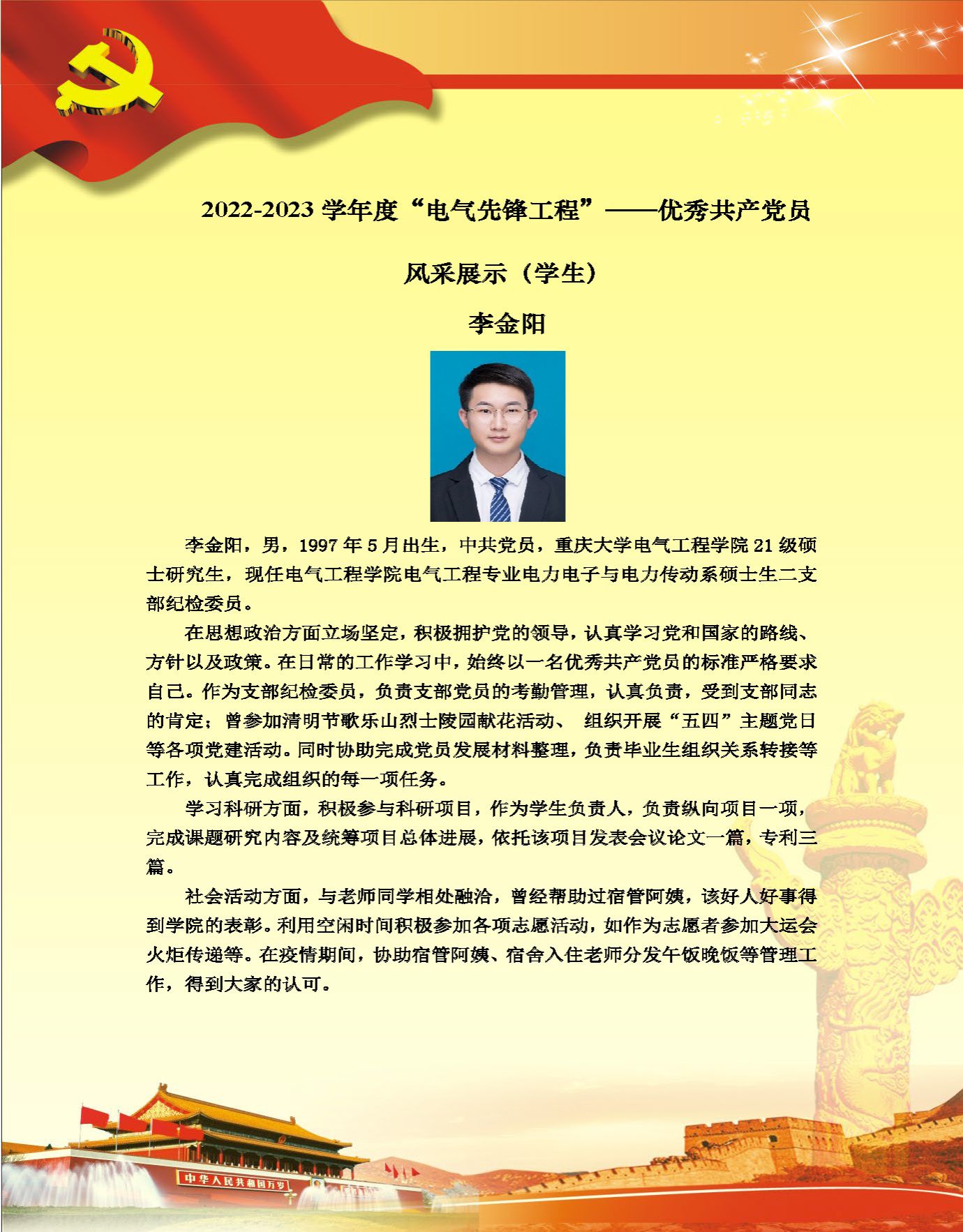 【党员风采】电力电子与电力传动系硕士生二支部李金阳