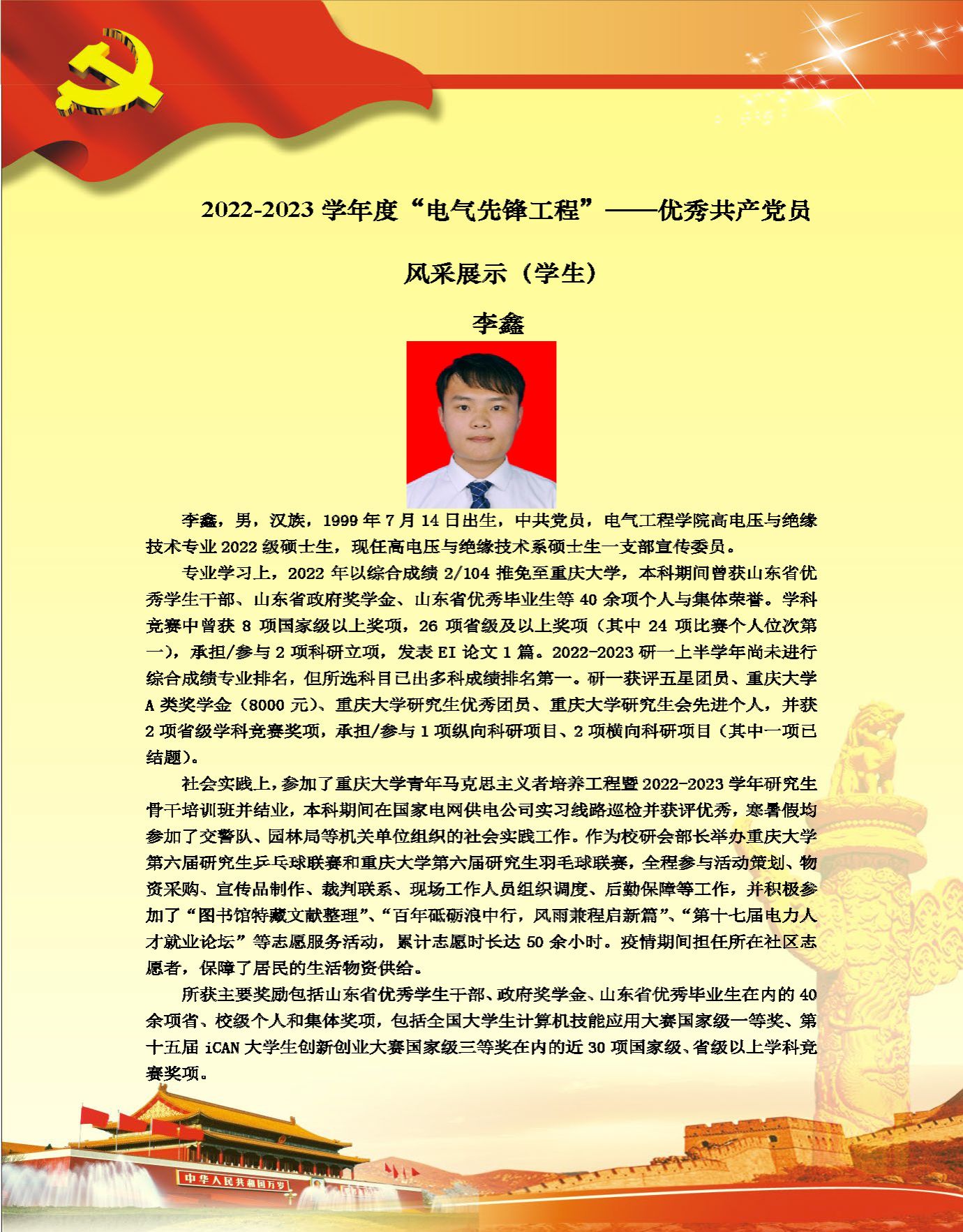 【党员风采】高电压与绝缘技术系硕士生一支部李鑫