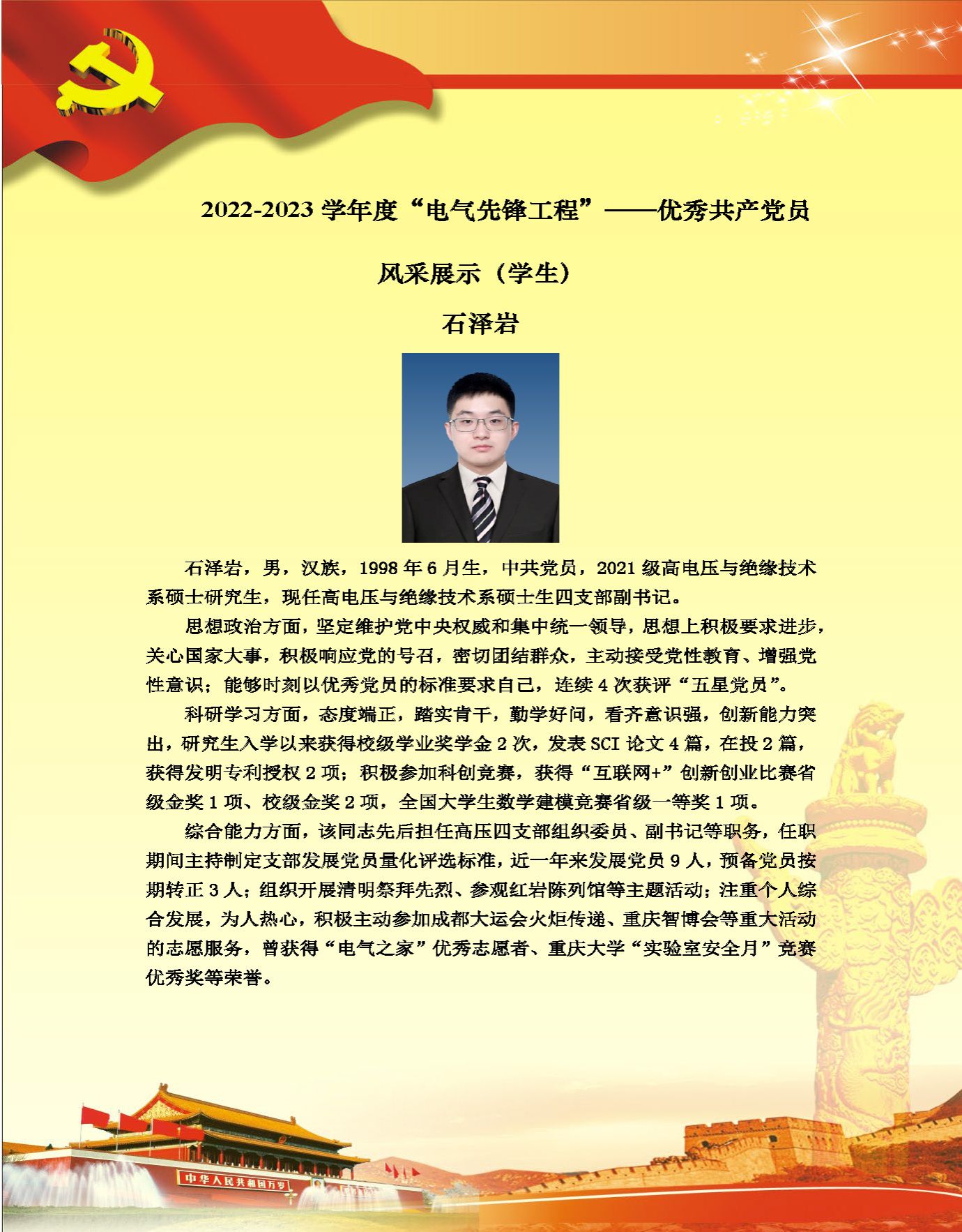 【党员风采】高电压与绝缘技术系硕士生四支部石泽岩