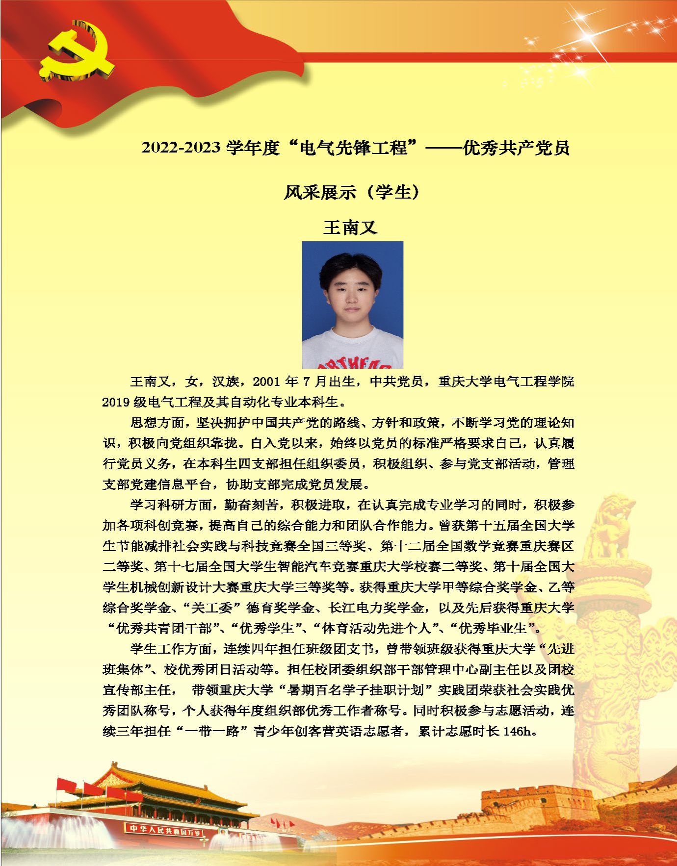 【党员风采】电工理论与新技术系硕士生二支部吴宇豪