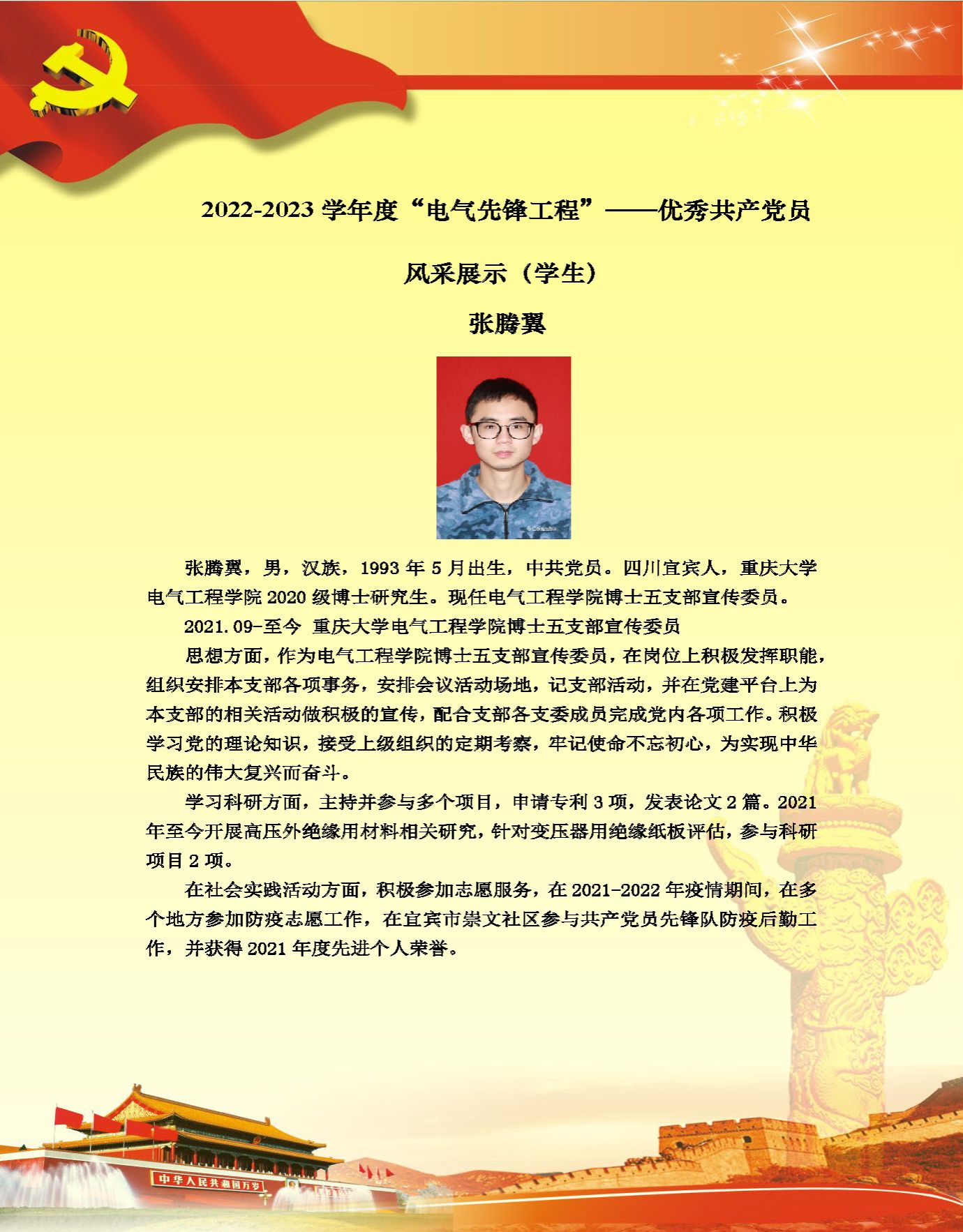 【党员风采】电工理论与新技术系硕士生三支部张亚鹏