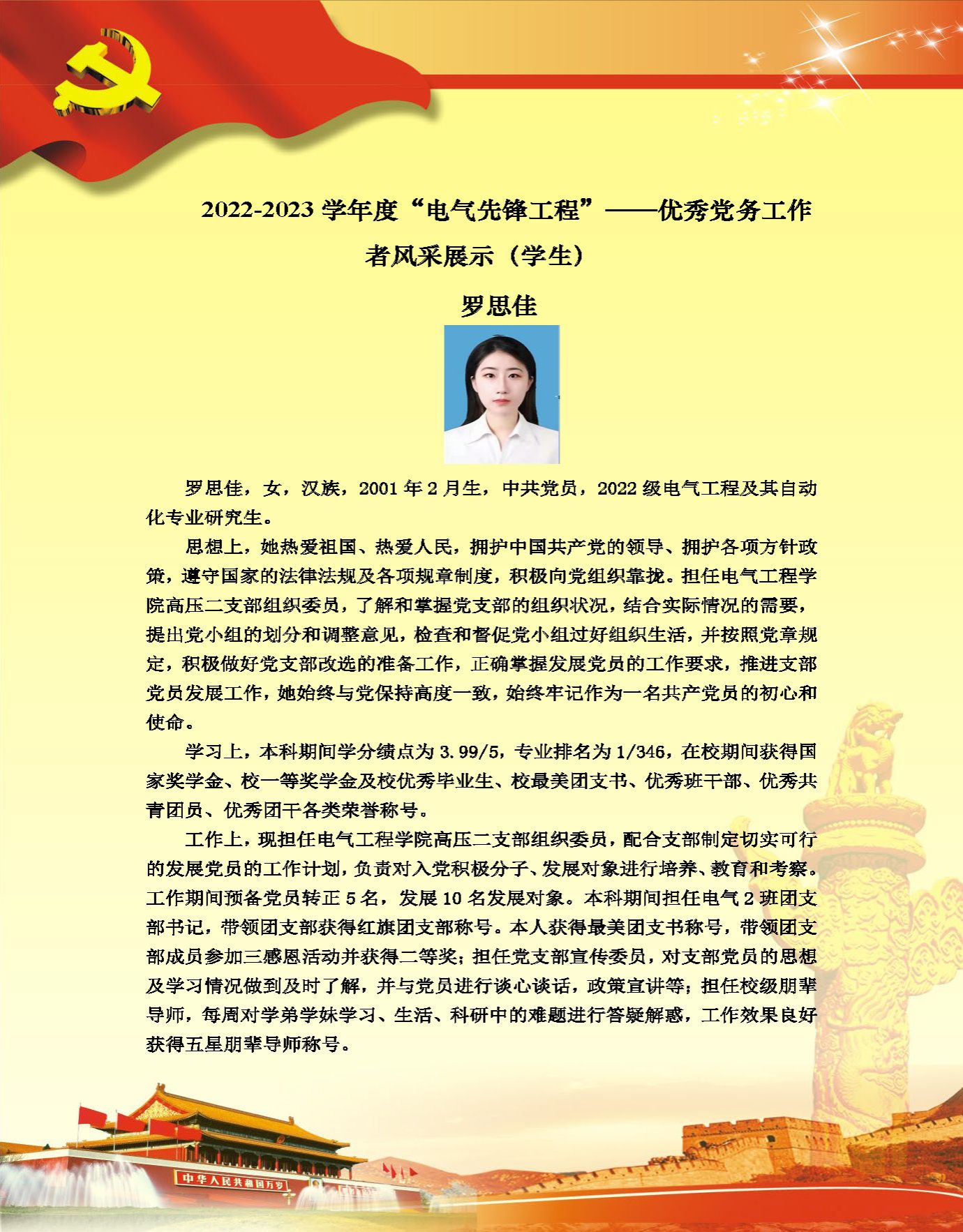 【党员风采】高电压与绝缘技术系硕士生二支部罗思佳