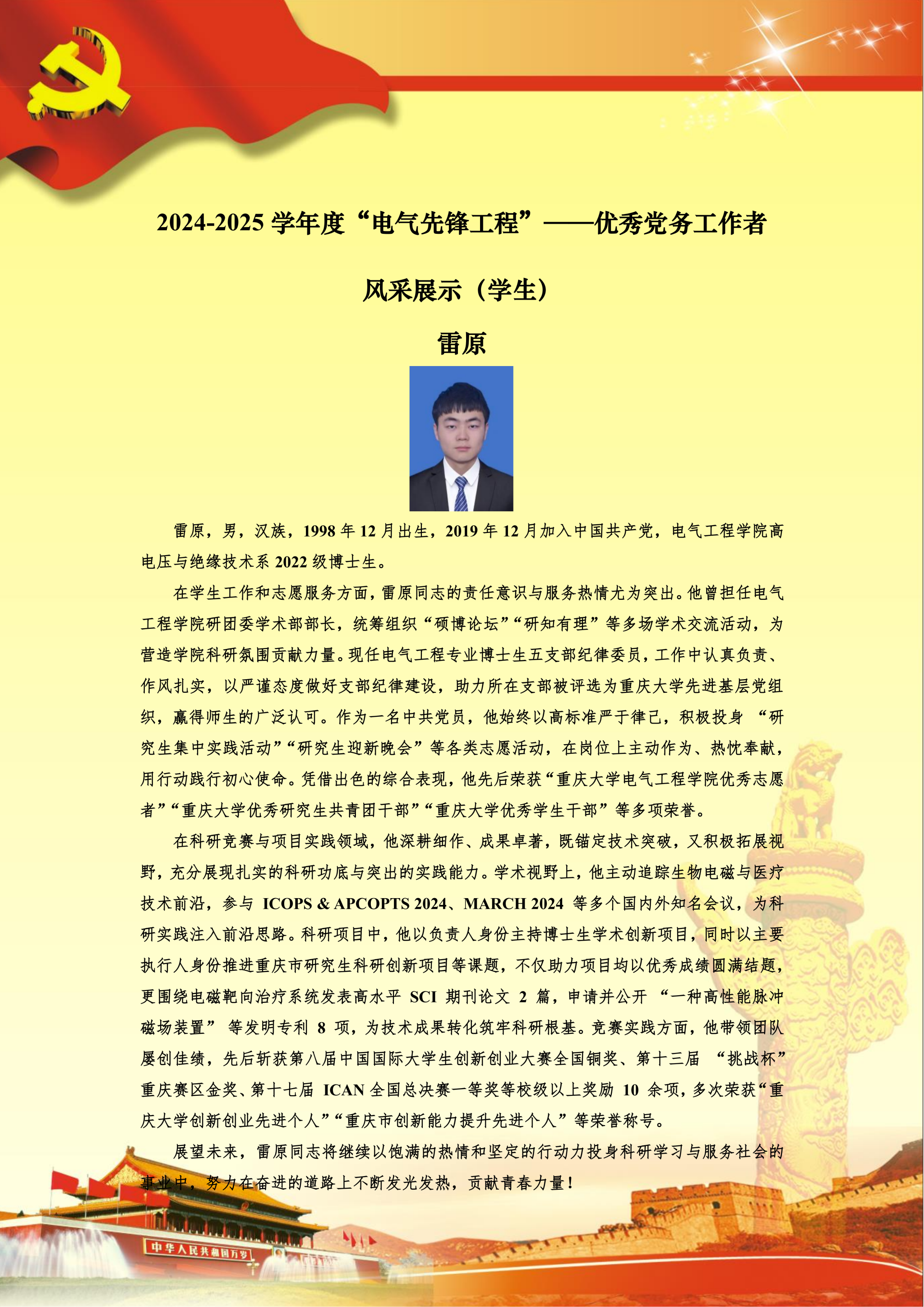 【党员风采】博士生五支部雷原