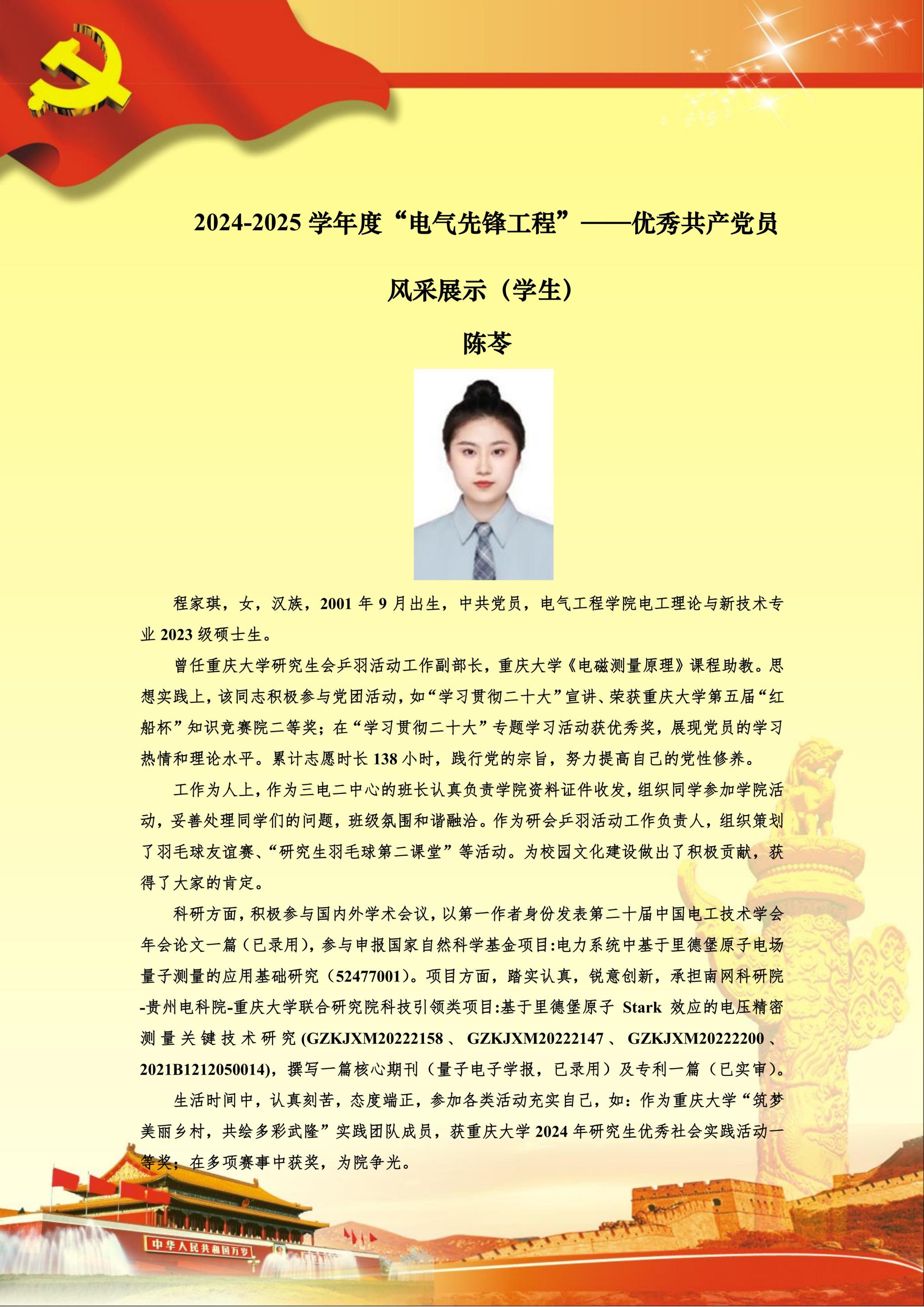 【党员风采】电工理论与新技术硕士生一支部陈苓