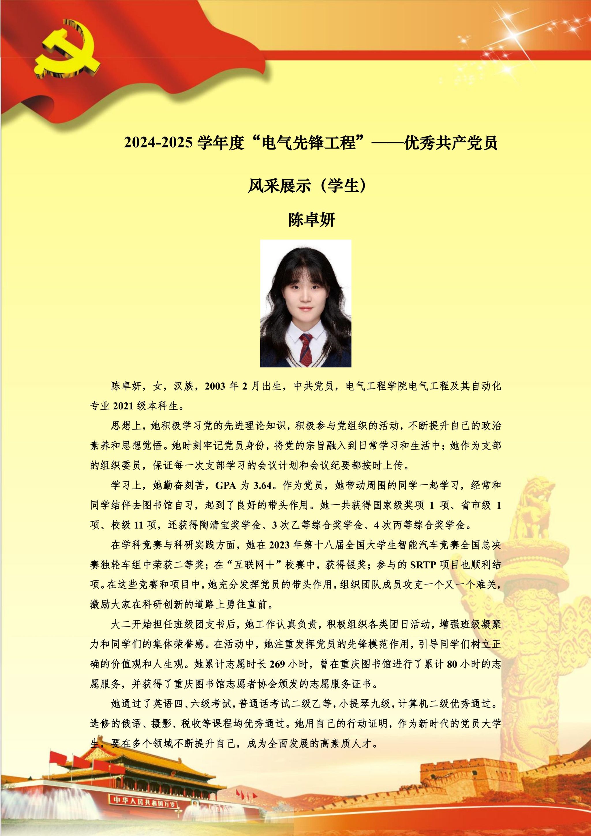 【党员风采】本科生三支部陈卓妍