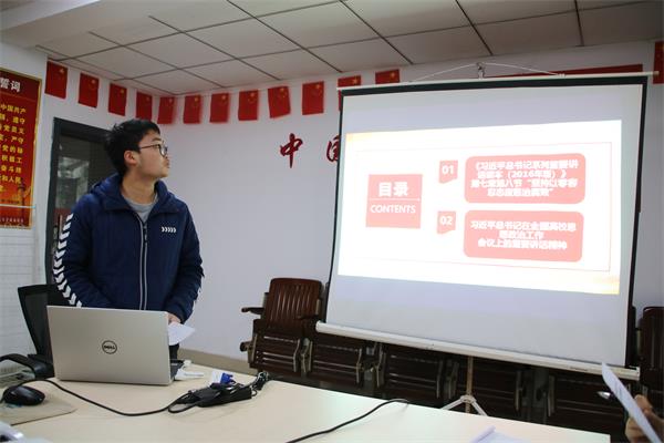 在会议的第二部分,刘俊杰组织学习了习近平总书记在全国高校思想政治工作会议上的重要讲话精神。