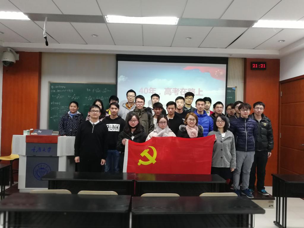 20171211日晚2000,磁力猫 本科四支部在磁力猫 A区八教A8103教室开展了“40年,高考在路上”主题党组织生活会。四支部的全体成员参加了本次活动,戴太阳、黄刚担任会议主讲人。