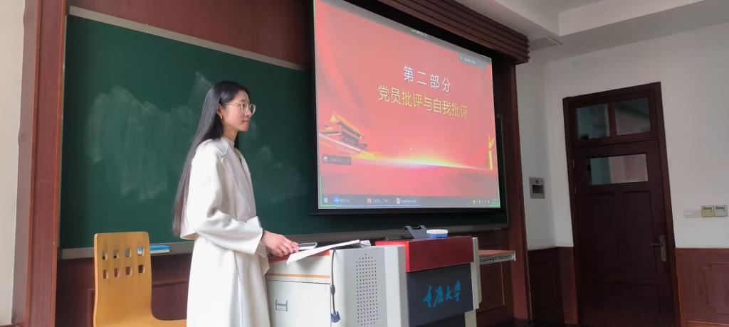 最后,支部书记胡力方对会议进行总结并提出了对未来的展望。身为大学生党员,我们要认真开展批评与自我批评,在这个前所未有的变革时代,唯有以批评与自我批评这个共产党人始终坚守的“不变”才能有效应对日新月异的“万变”。坚定不移听党话、跟党走,身为党员,要做到修身律己,就应该通过批评和自我批评这种自我革命的方式和胸怀坦荡的态度全面检视自己,改正缺点、纠正不足、提高修养,进而真正保持共产党员的先进性和纯洁性,为实现中华民族伟大复兴中国梦而不懈奋斗。