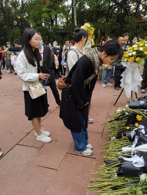 活动伊始,同志们在工作人员的指引下来到歌乐山烈士陵园,向烈士墓敬献花圈和鲜花,默哀致意。与此同时,重庆市社会各界也在歌乐山烈士陵园进行了清明祭英烈活动。从血气方刚的军人战士,到朝气蓬勃的青年学子,大家手持鲜花,庄严肃穆,对烈士们进行了深切的缅怀追思。