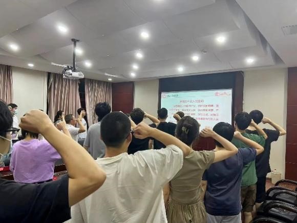 最后,高压三支部为毕业年级党员发放了政治生日贺卡,在胡建林书记的带领下,支部全体党员一起重温了入党誓词并合影留念。
