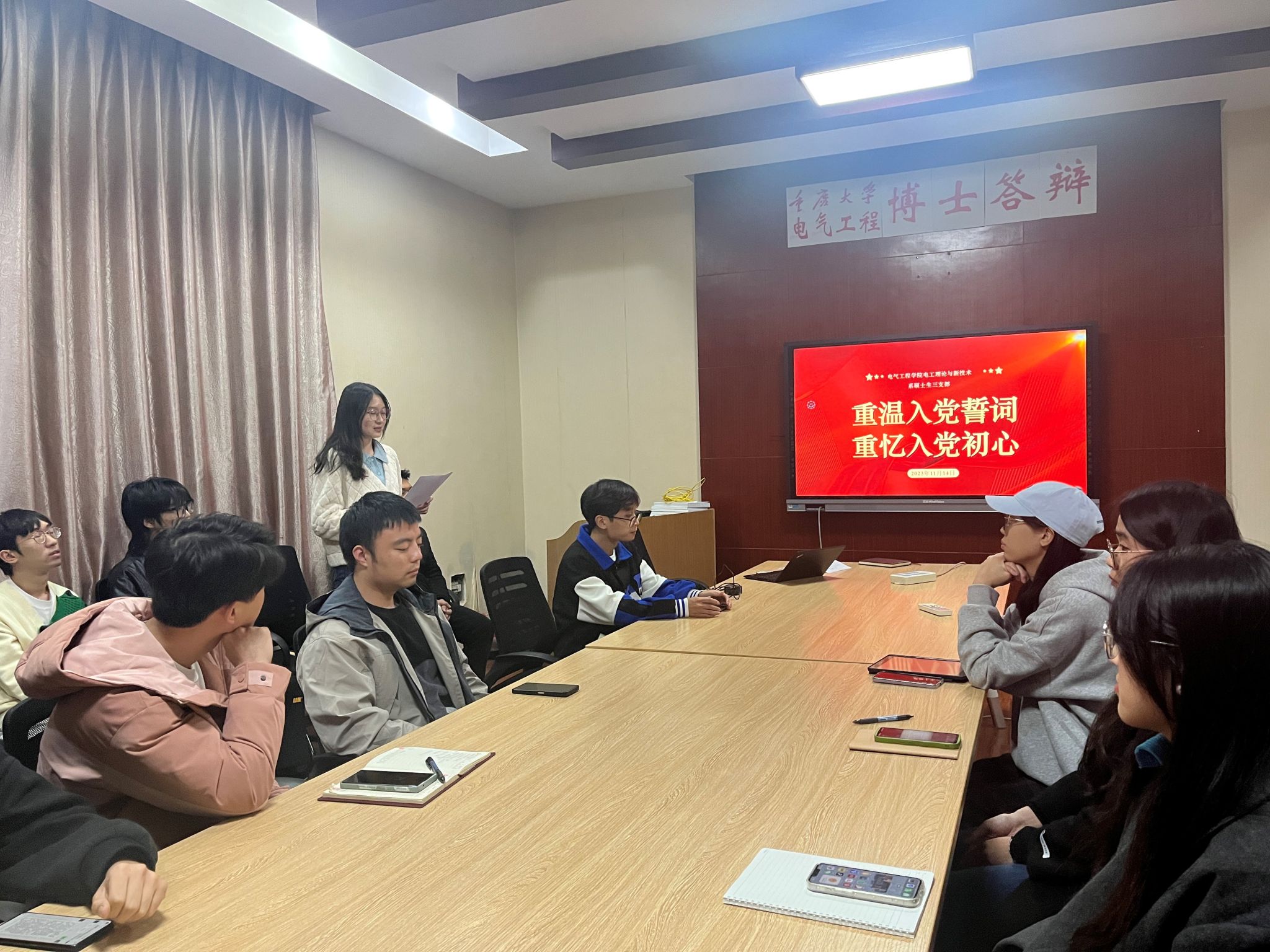 分享结束后,在喻昌立同志的带领下,全体同学庄严宣誓,重温入党誓词,表达对党的忠诚和对人民的赤诚,也将入党初心和使命深深地铭刻在心中。