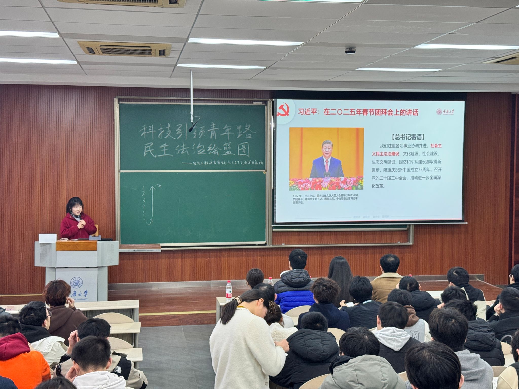 23级6班团支书谭祎瑶围绕“社会主义民主法治建设”,系统梳理了我国法治建设的历史脉络,深入解读了“科学立法、严格执法、全民守法”的法治中国建设路径,使同学们深刻认识到法治是国家长治久安的基石。