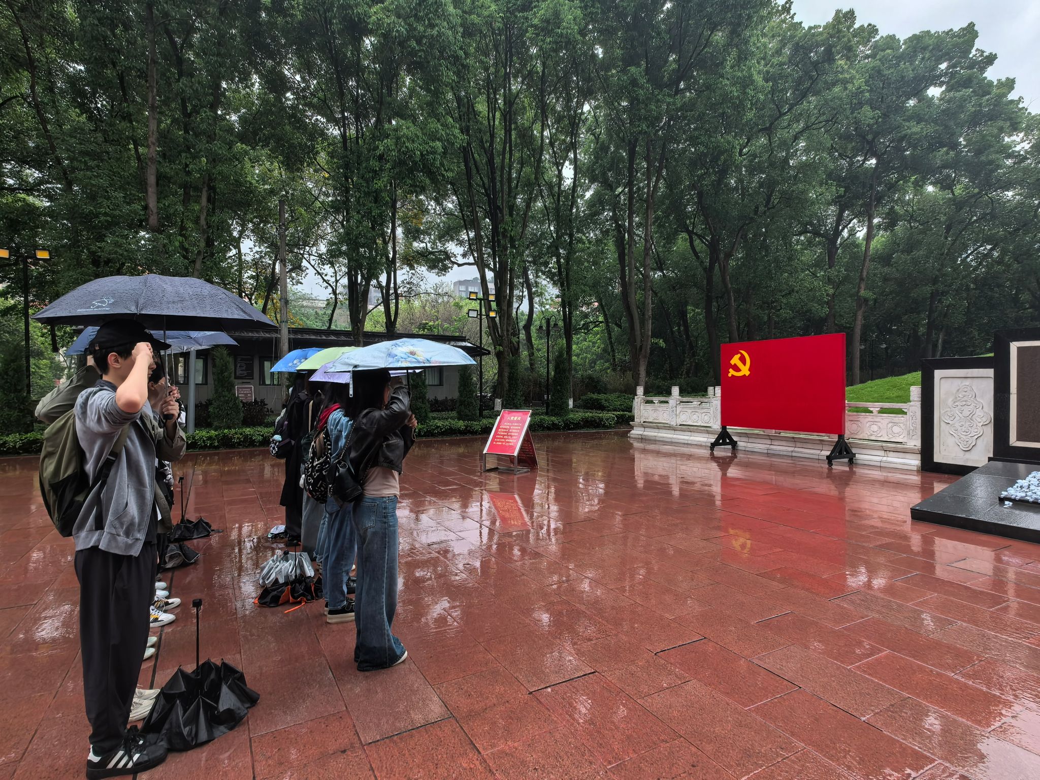 细雨纷飞中,同志们拾级而上,来到歌乐山烈士陵园。纪念碑前,青草含露,松柏挺立,碑上“死难烈士之墓”六个字在雨幕中格外醒目。支部预备党员欧宇振带领全体同志整齐列队,右手握拳高举,面向烈士墓庄严宣誓:“我志愿加入中国共产党,拥护党的纲领,遵守党的章程,履行党员义务,执行党的决定,严守党的纪律,保守党的秘密,对党忠诚,积极工作,为共产主义奋斗终身,随时准备为党和人民牺牲一切,永不叛党。” 铿锵誓言回荡山间,与陵园内的庄严肃穆交融,化作对先烈的深切缅怀与对初心的郑重承诺。
