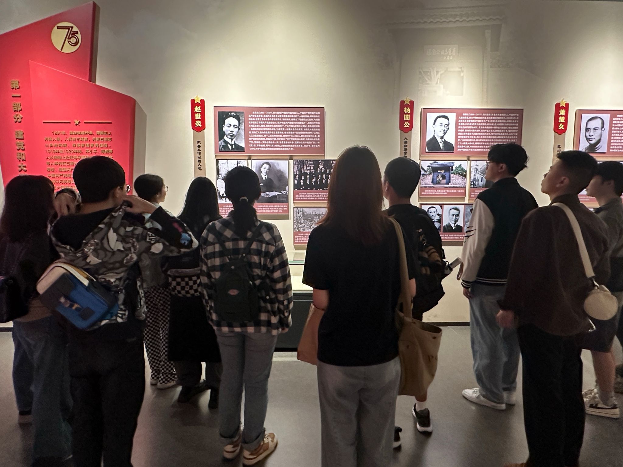 走近歌乐山革命纪念馆,雄伟高大的建筑在细雨薄雾中更显肃穆。同志们首先参观一楼《为有牺牲多壮志——新民主主义时期重庆著名烈士事迹展》,泛黄的历史照片、珍贵的文献资料,生动展现了建党初期至解放战争时期,革命先烈在各个历史阶段为民族独立和人民解放作出的英雄壮举。“红色政权是无数先烈用热血换来的!” 看着展柜中烈士们遗留的书信与物件,同志们驻足良久,用心学习先辈们的事迹,感悟先烈们为国为民的革命初心。