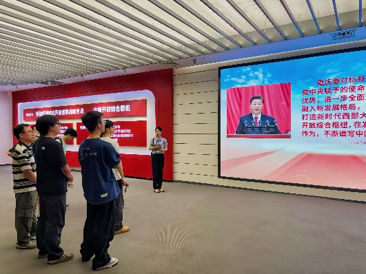 重庆市规划展览馆作为全国青少年教育基地、重庆市科普教育基地,是展示山城发展脉络的重要窗口。规划展览馆以沉浸式展陈生动呈现重庆的过去、现在与未来。在13000平方米的主展厅内,党员同志们依次参观八大主题展区。从“历史文化名城”的三千年建城史追溯,到“自然山水”展区复杂地形的空间治理智慧解析;从“总体规划”动态沙盘呈现的西部战略支点蓝图,到“高质量发展”展区的新材料应用案例。在讲解员系统的阐释下,党员同志们充分感受和领悟了重庆落实西部陆海新通道建设、长江经济带生态协同、成渝双城经济圈互联互通等国家战略的实践路径。