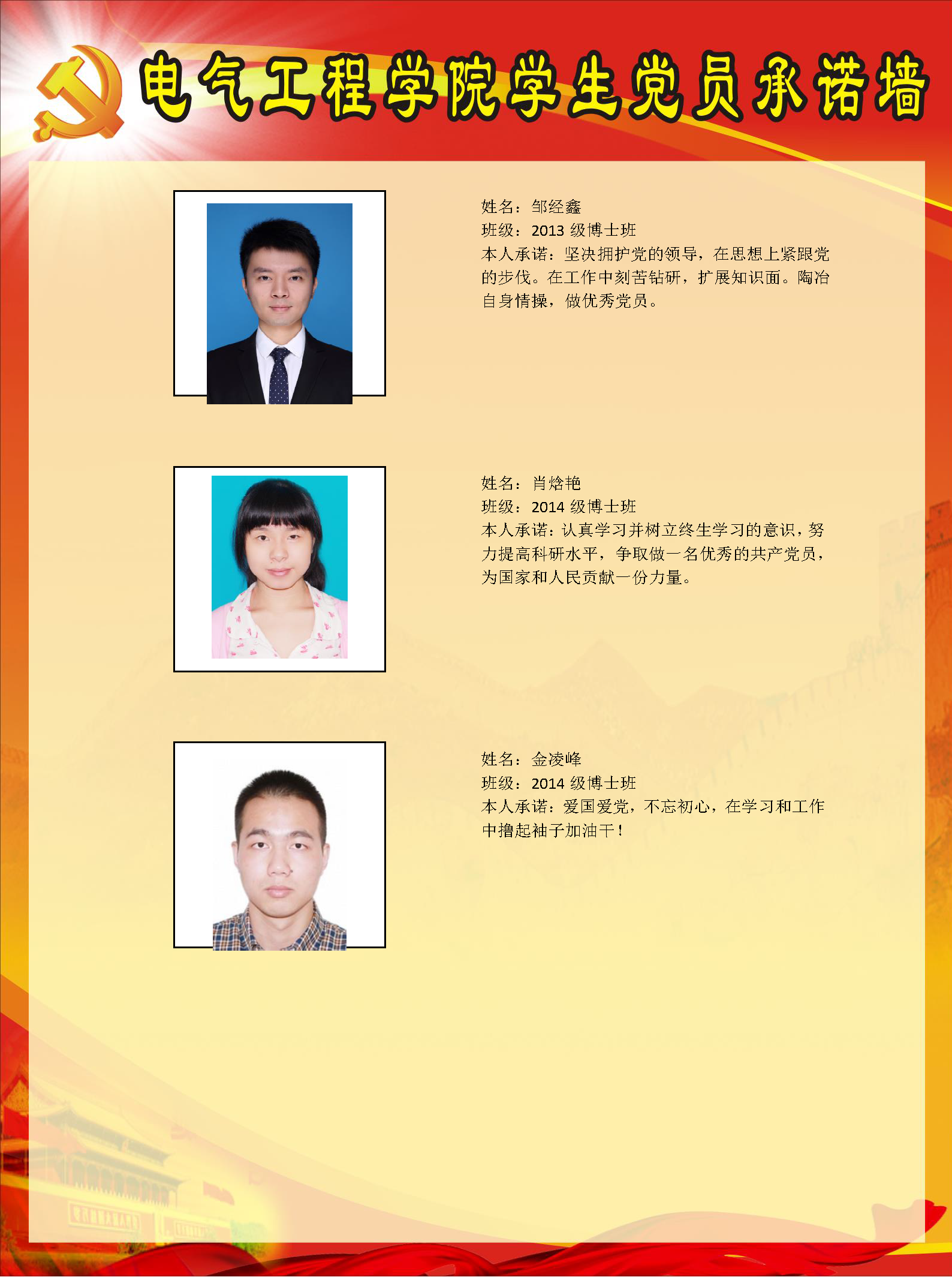 博士一支部委员会党员承诺墙