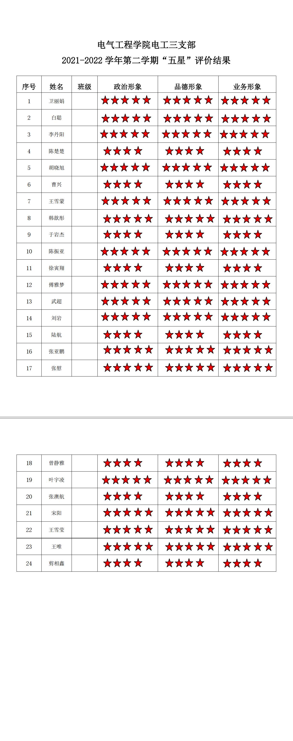 磁力猫 电工一支部2021-2022学年第二学期“五星评价结果”