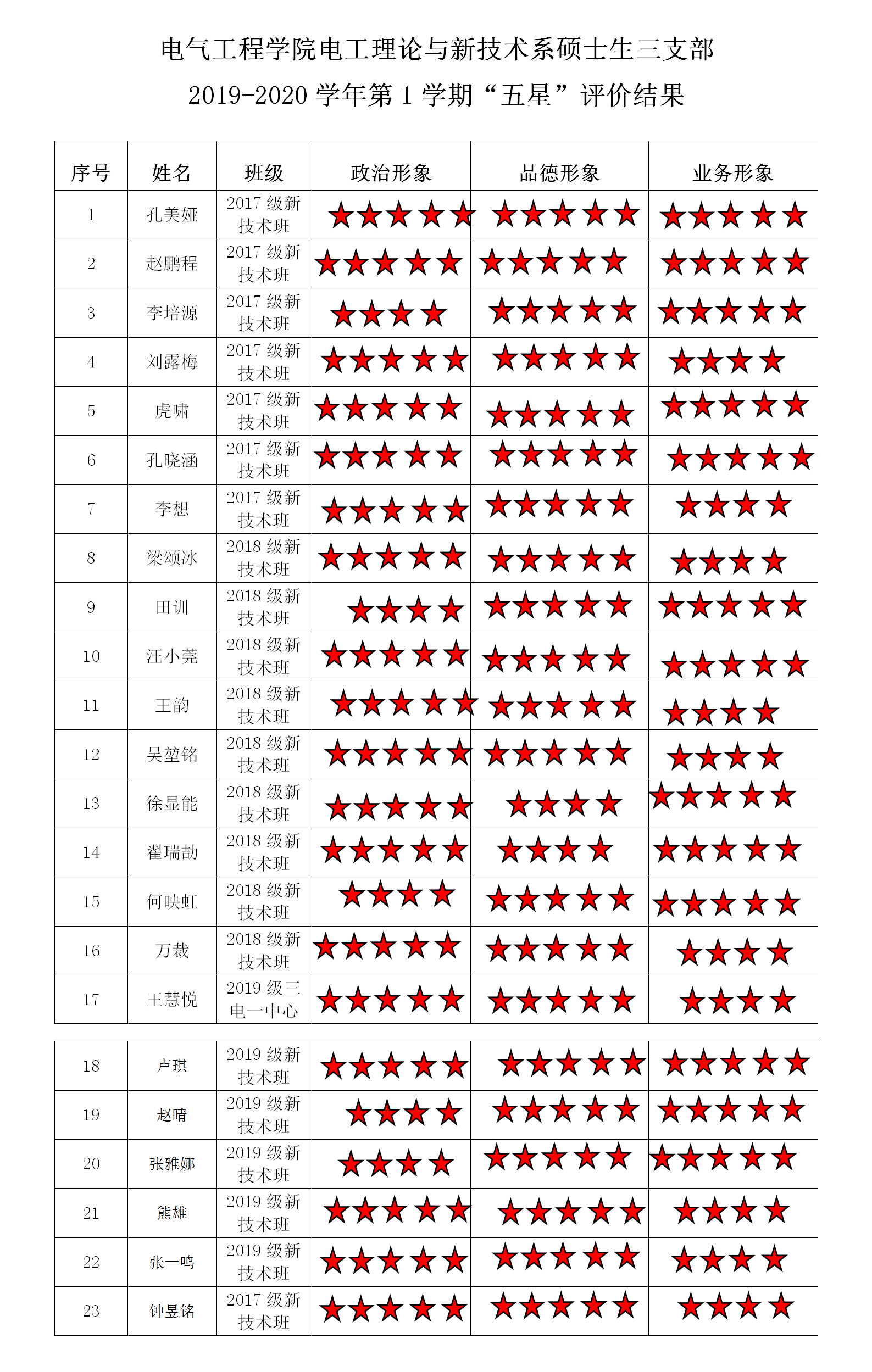 磁力猫 电工理论与新技术系第二支部 2019-2020学年第1学期“五星”评价结果