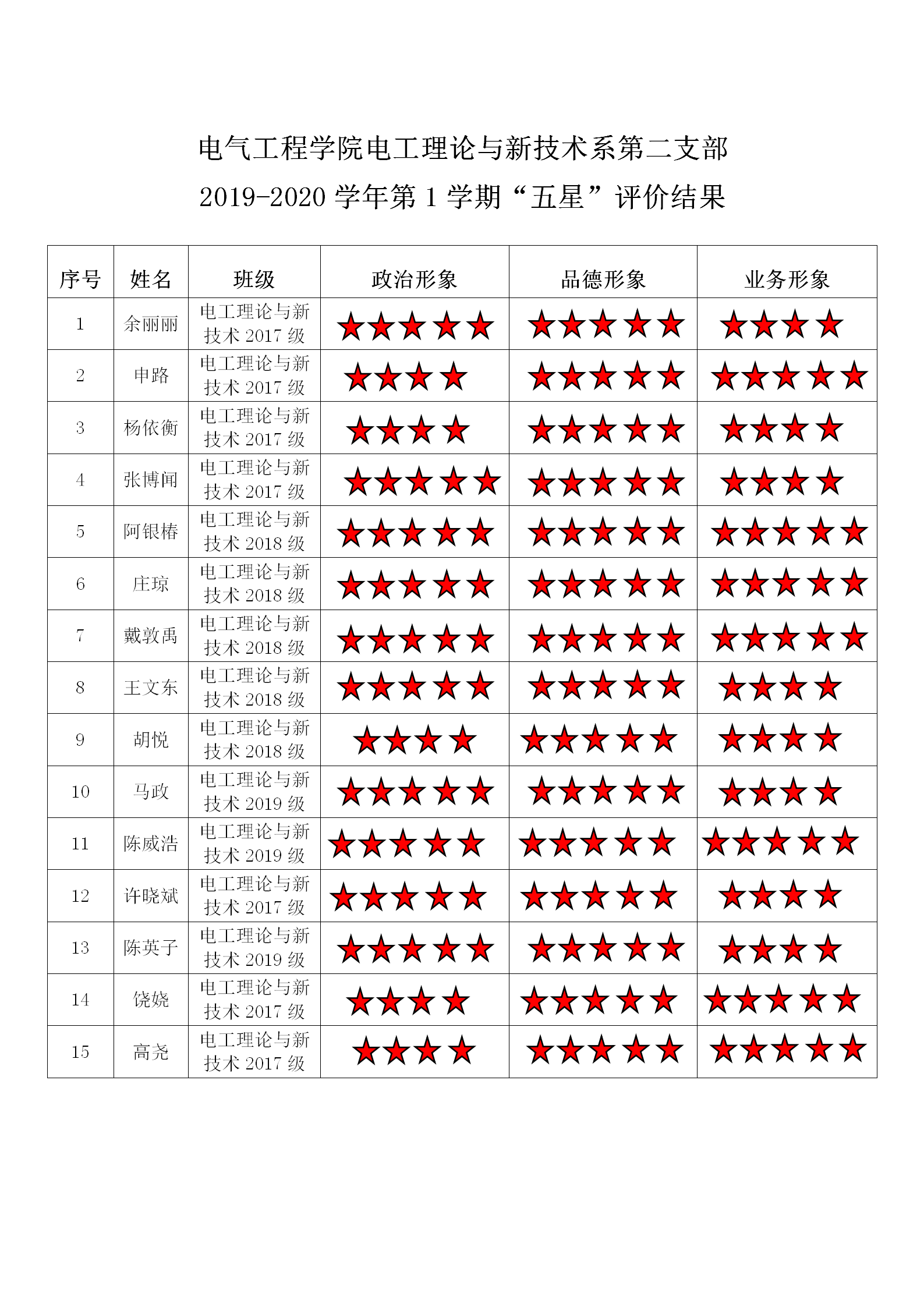 磁力猫 电工理论与新技术系第二支部 2019-2020学年第1学期“五星”评价结果