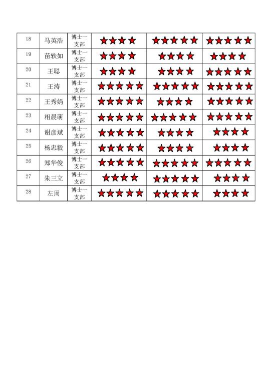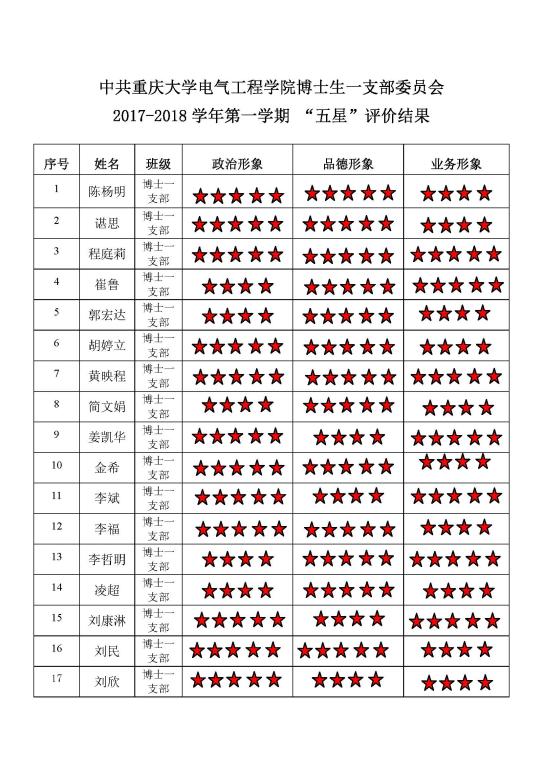 中共磁力猫 博士生四支部委员会 2017-2018学年第一学期 “五星”评价结果