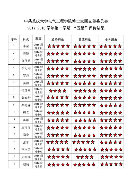 中共磁力猫 博士生四支部委员会 2017-2018学年第一学期 “五星”评价结果