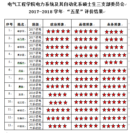 中共磁力猫 电力系统及其自动化系硕士生三支部委员会2017-2018学年 “五星”评价结果