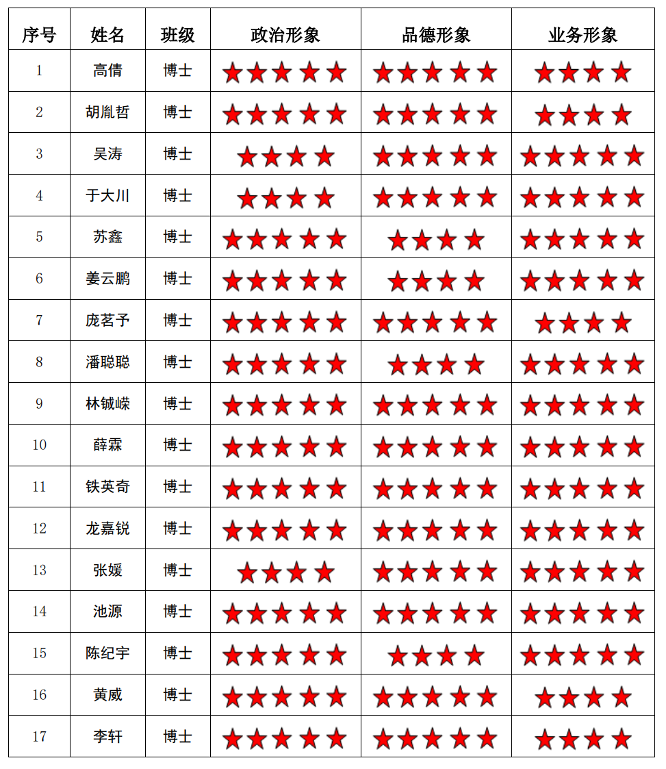 磁力猫 博士生二支部 2022-2023学年第二学期“五星”评价结果