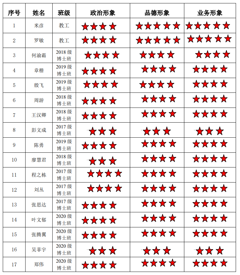 磁力猫 博士生五支部 2022-2023学年第二学期“五星”评价结果