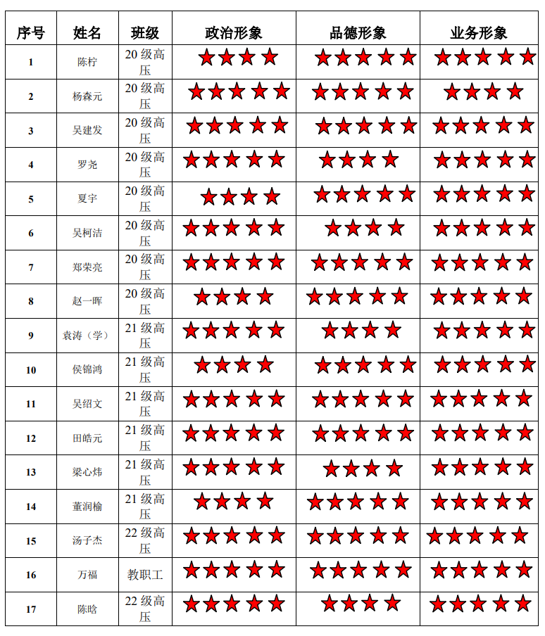 磁力猫 高电压与绝缘技术硕士生二支部 2022-2023学年第二学期“五星”评价结果