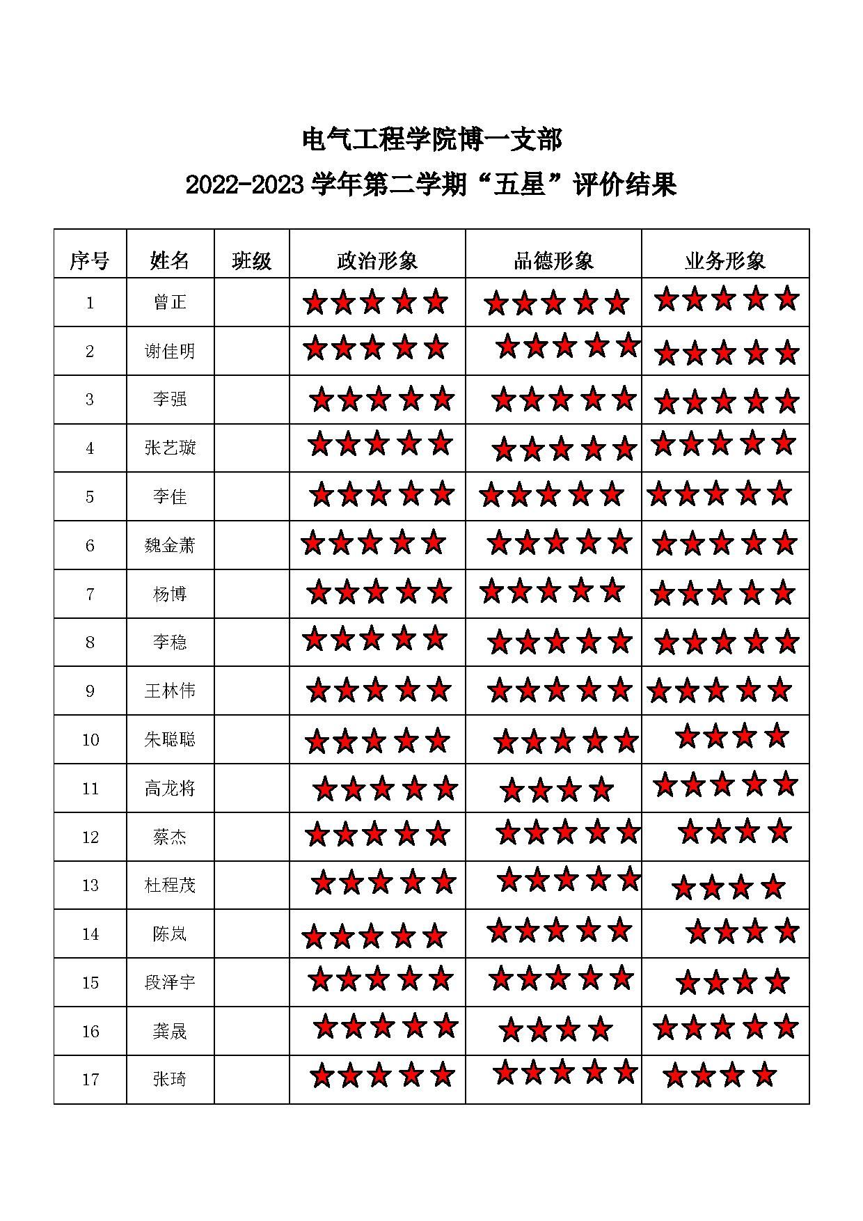 磁力猫 博士二支部 2022-2023学年第二学期“五星”评价结果