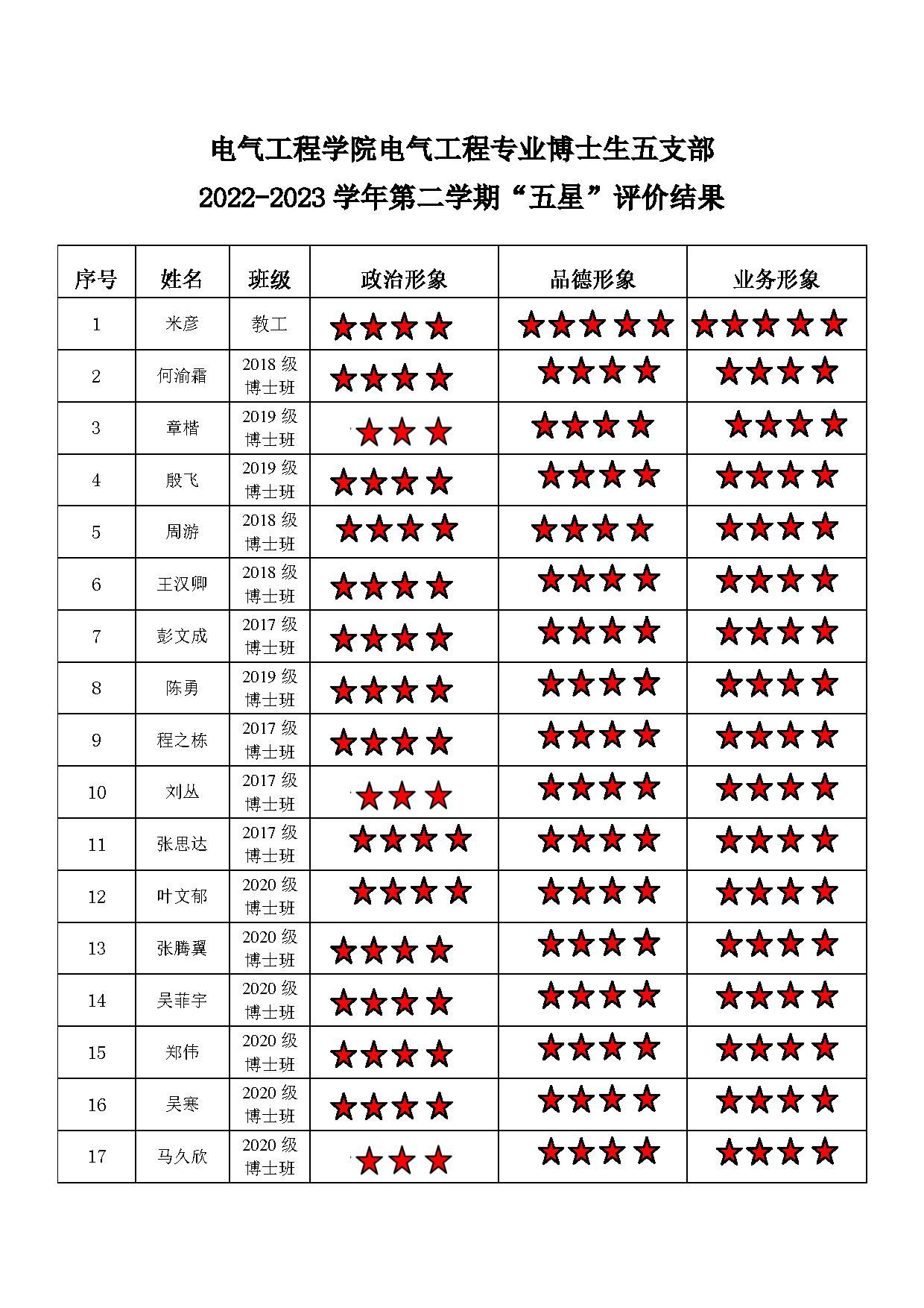 磁力猫 电工一支部 2022-2023学年第二学期“五星”评价结果