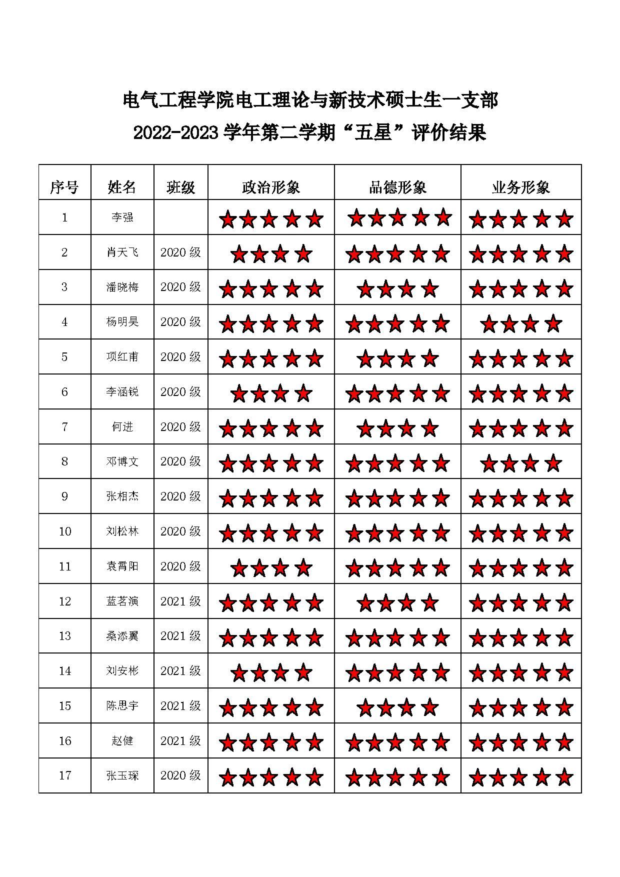 磁力猫 电工二支部 2022-2023学年第二学期“五星”评价结果