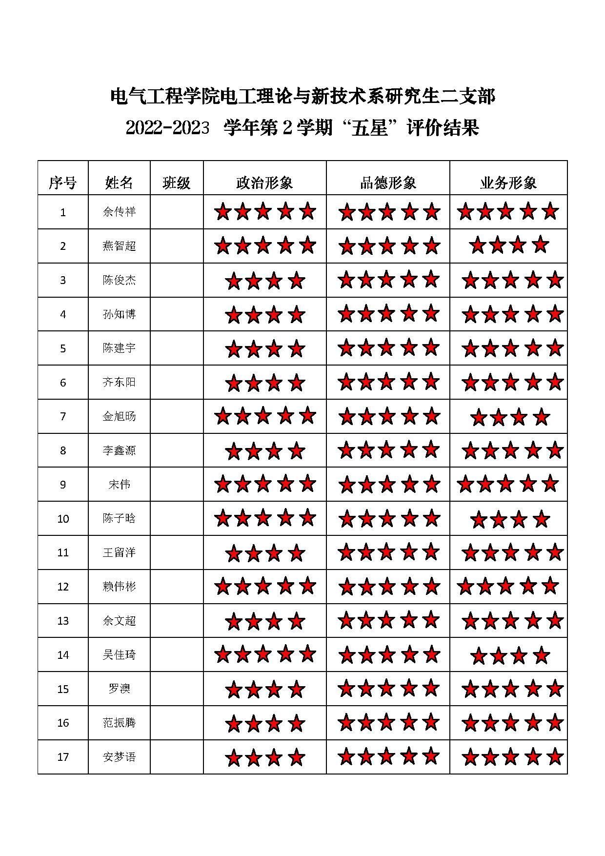 磁力猫 电工二支部 2022-2023学年第二学期“五星”评价结果