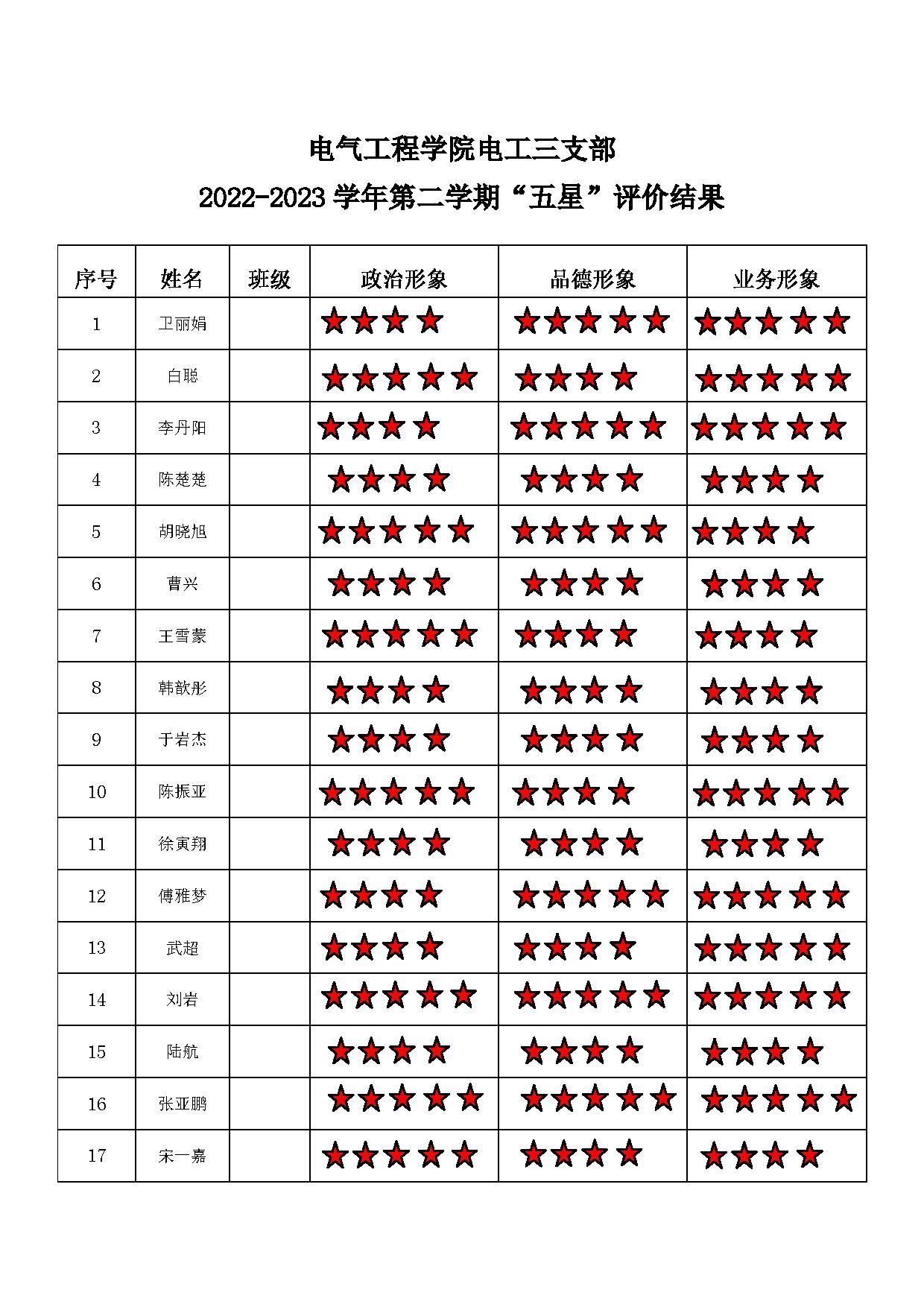 磁力猫 电工二支部 2022-2023学年第二学期“五星”评价结果