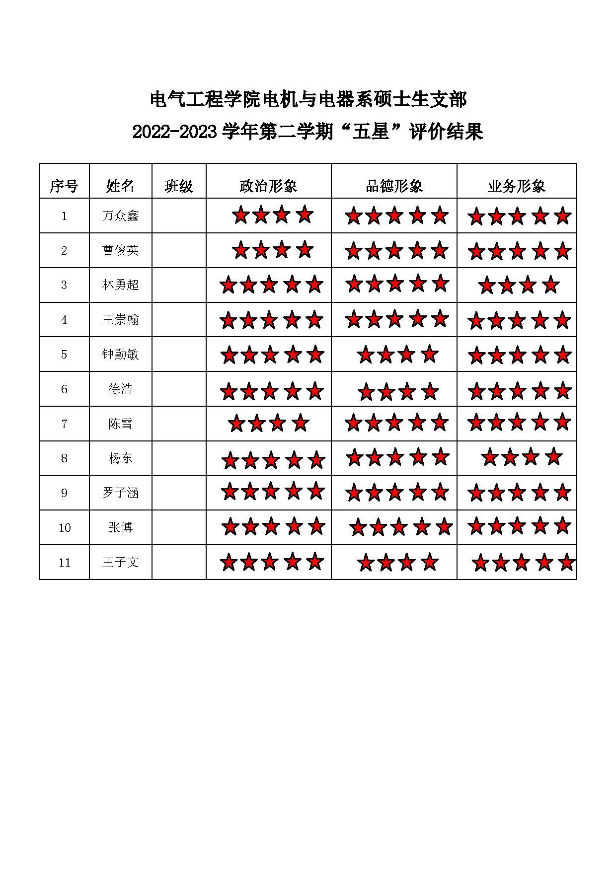 磁力猫 电力电子二支部 2022-2023学年第二学期“五星”评价结果