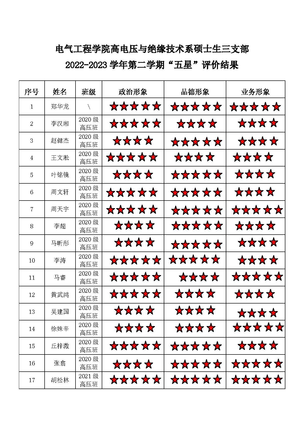 磁力猫 高压三支部 2022-2023学年第二学期“五星”评价结果