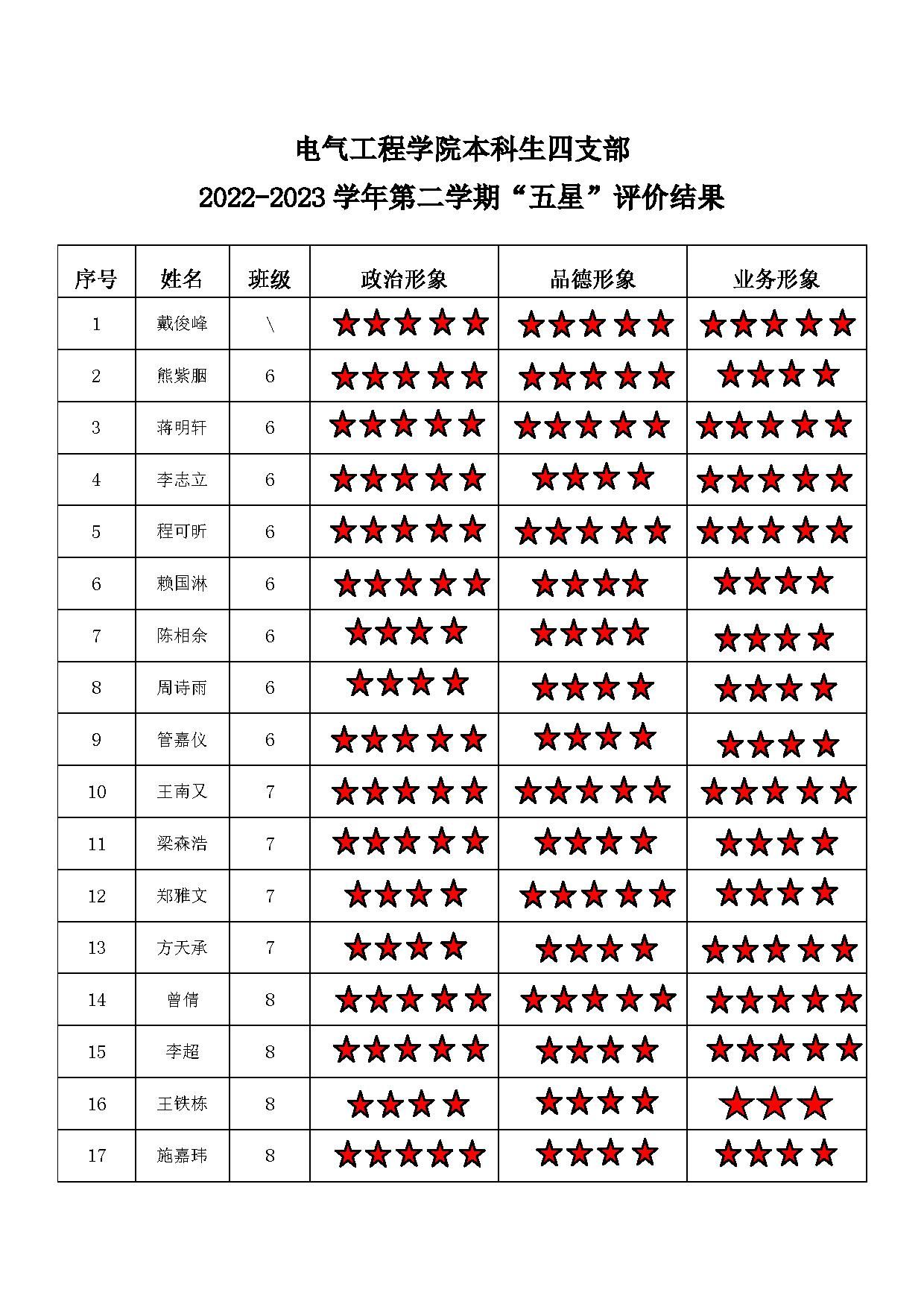 磁力猫 高压四支部 2022-2023学年第二学期“五星”评价结果