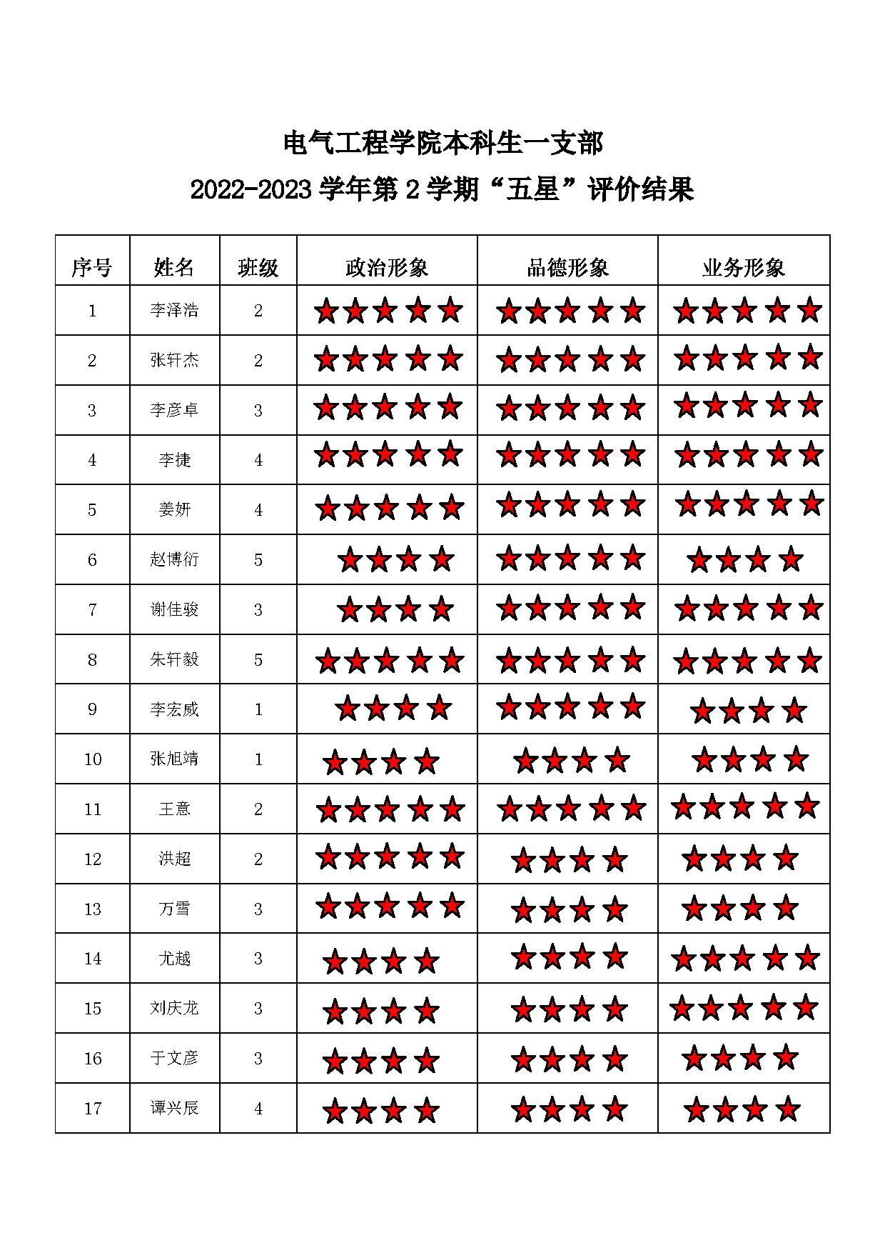 磁力猫 本科生二支部 2022-2023学年第二学期“五星”评价结果