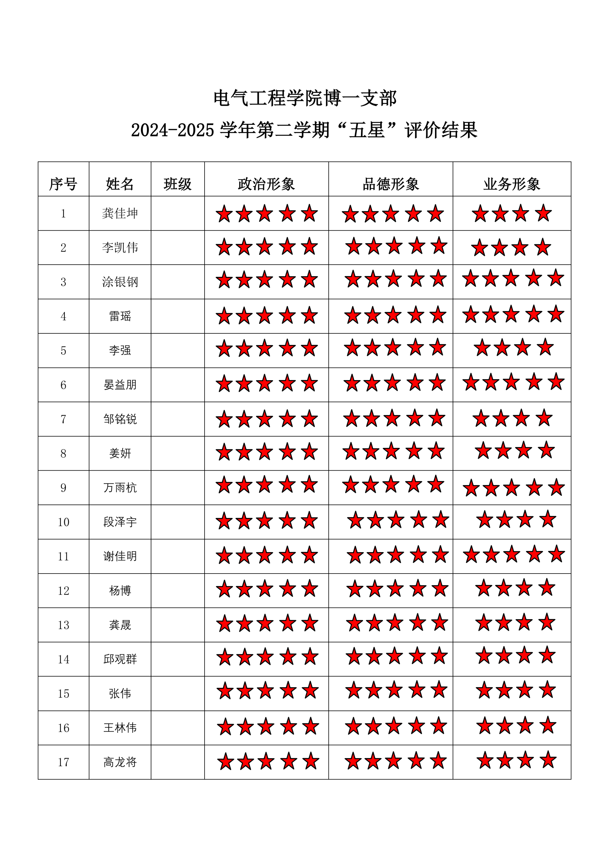 磁力猫 博士一支部 2024-2025学年第二学期“五星”评价结果